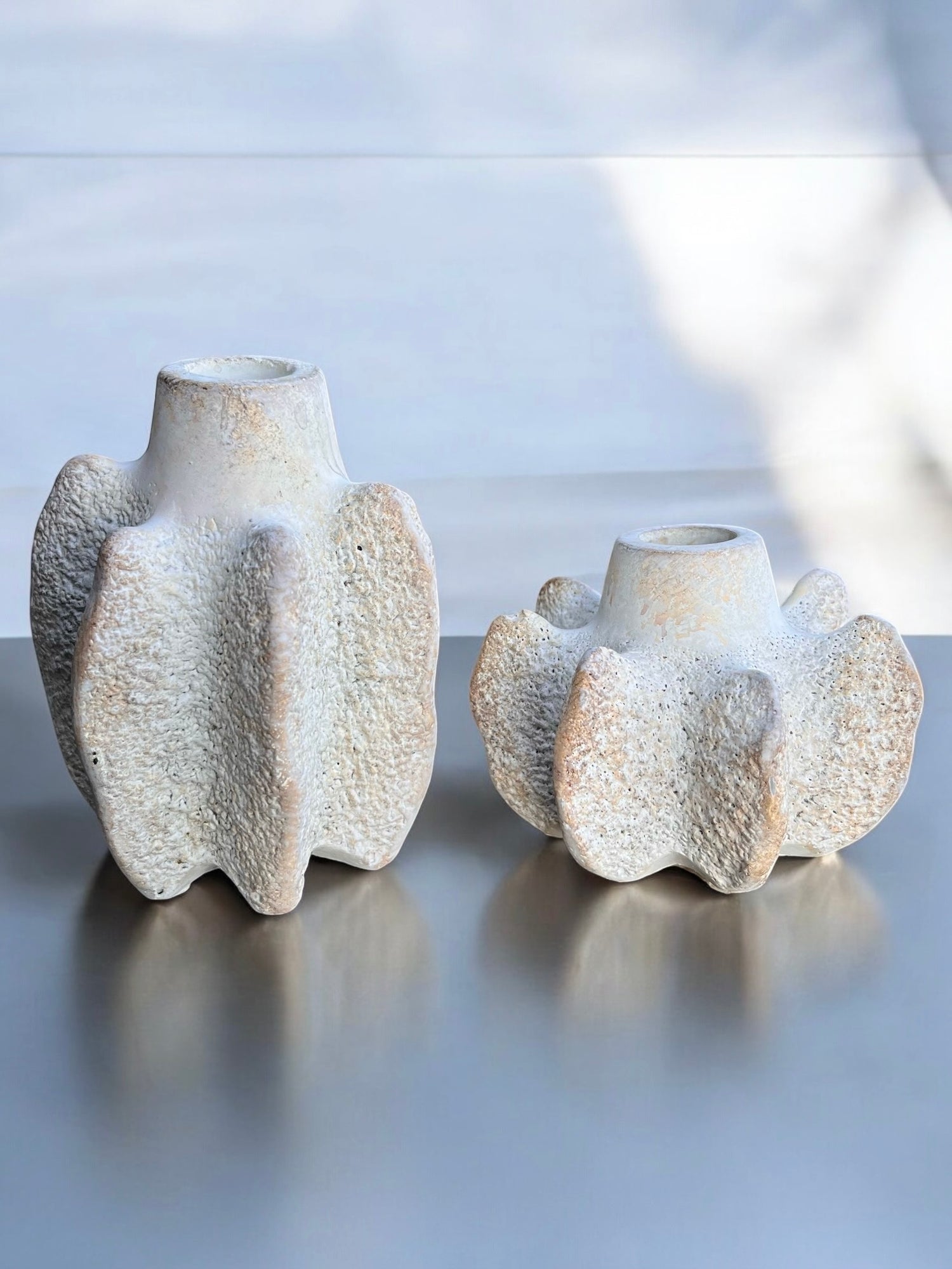 Perfect for mantels, console tables and shelves, or used as outdoor candle holders for patios and garden dining. The brutalist silhouette and sturdy construction make them ideal for modern rustic homes, minimalist interiors or industrial-style spaces